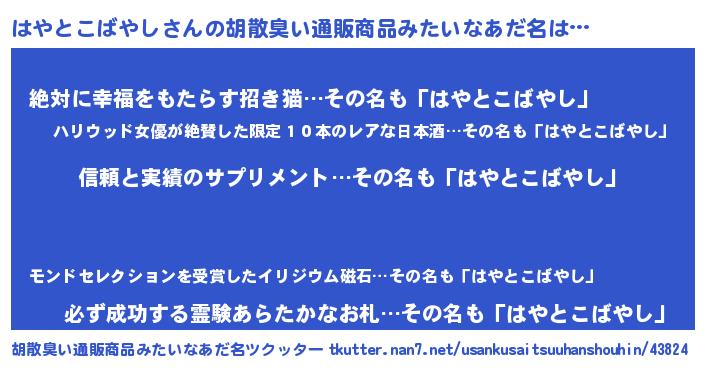| 意味不明あだ名 | 『とにかく怪しいはやとこばやし』 |