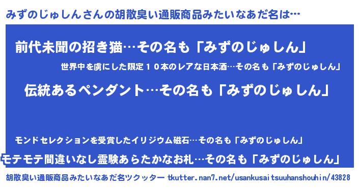 | 意味不明あだ名 | 『とにかく怪しいみずのじゅしん』 |