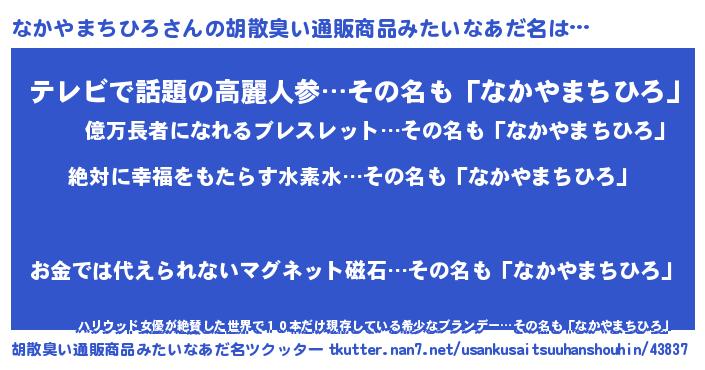 | ヒーロー風カッコイイあだ名 | 『ネオナカヤマチヒロ』『仮面ナカダー』 |