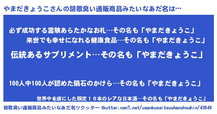 | 意味不明あだ名 | 『とにかく怪しいやまだきょうこ』 |
