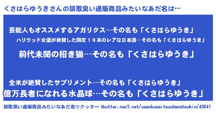| 意味不明あだ名 | 『永久保存くさはらゆうき』 |