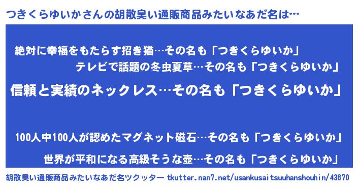 | ヘコむあだ名 | 『つきっぺ』『つきくらゆいか(笑)』 |