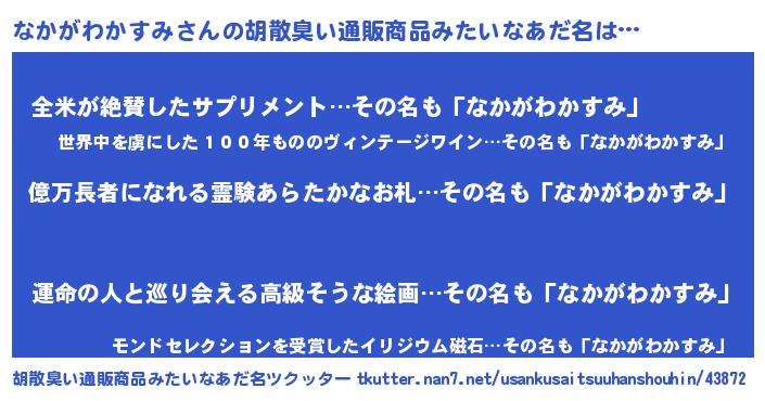 | 伝説のあだ名 | 『封印されしスナイパーなかがわかすみ』 |