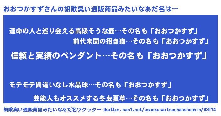 | 意味不明あだ名 | 『とにかく怪しいおおつかすず』 |