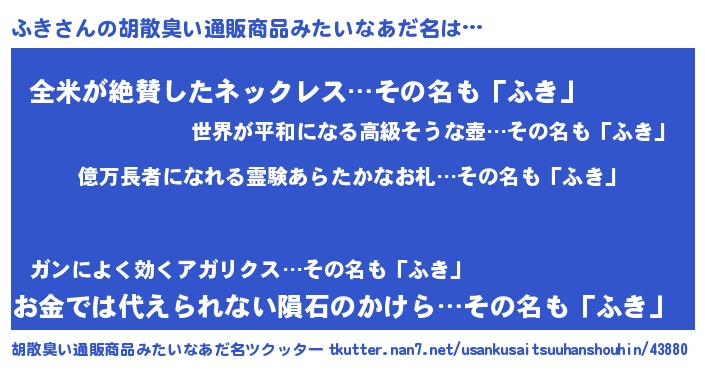 | ヘコむあだ名 | 『ふきもー』『ふきっ子』『レバニラ』 |