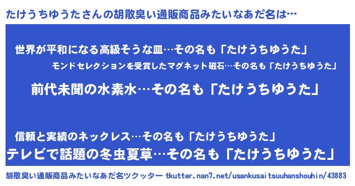 | ヘコむあだ名 | 『たけうちゆうた(遠い目)』『酢こんぶ』 |