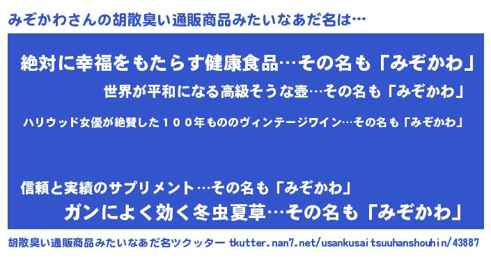 | 意味不明あだ名 | 『住所不定無職みぞかわ(6歳)』 |