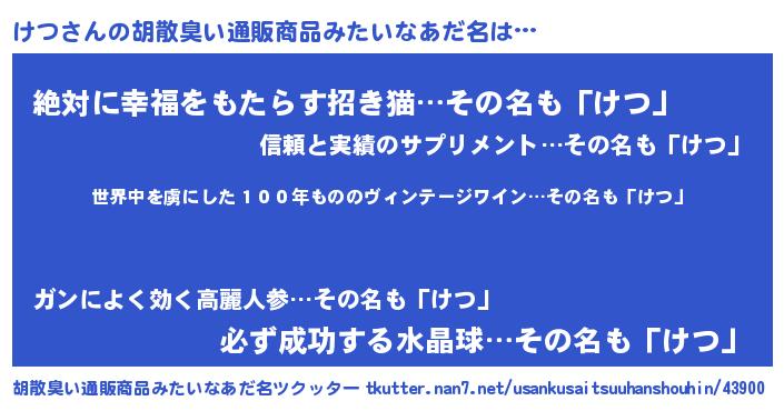 | ヒーロー風カッコイイあだ名 | 『仮面ケツダー』『ネオケツ』 |