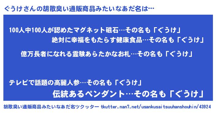 | ヒーロー風カッコイイあだ名 | 『スーパーグウケ』『正義の使者ぐうけ』 |