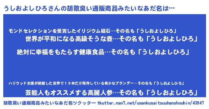| 意味不明あだ名 | 『永久保存うしおよしひろ』 |