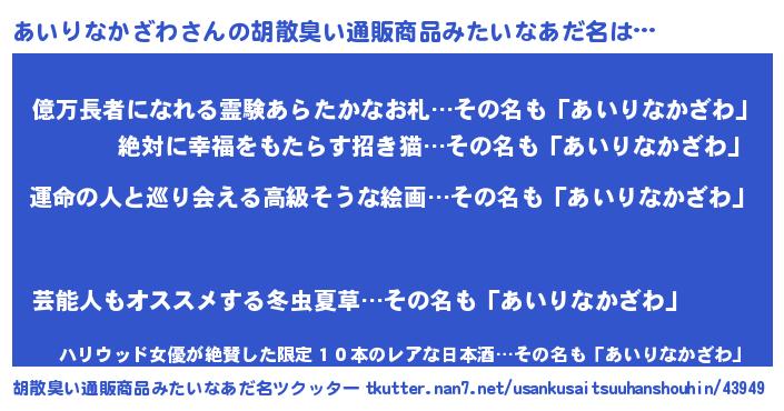 | 意味不明あだ名 | 『あいりなかざわフォーエバー』 |
