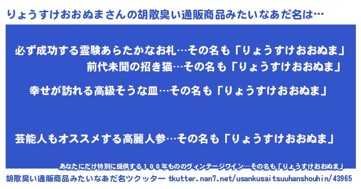 | 伝説のあだ名 | 『秘められし陰陽師りょうすけおおぬま』 |