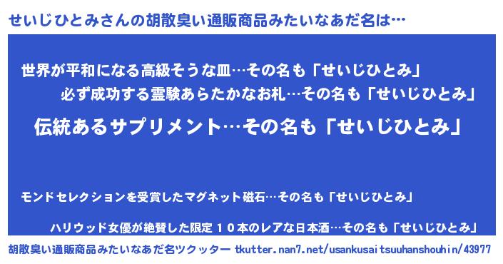 | 欧米人風あだ名 | 『ウサインせいじひとみ』 |