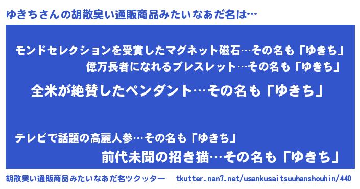 | 意味不明あだ名 | 『とにかく怪しいゆきち』 |