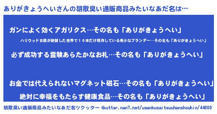 | ヘコむあだ名 | 『ありっふぃ~』『ありがきょうへい(爆)』 |