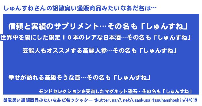 | 意味不明あだ名 | 『自称しゅんすね』 |