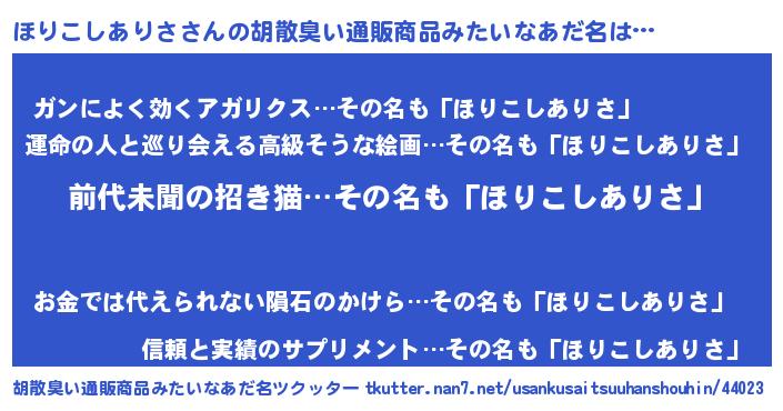 | 意味不明あだ名 | 『永久保存ほりこしありさ』 |