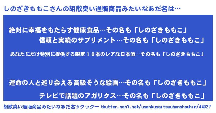 | 意味不明あだ名 | 『住所不定無職しのざきももこ(47歳)』 |