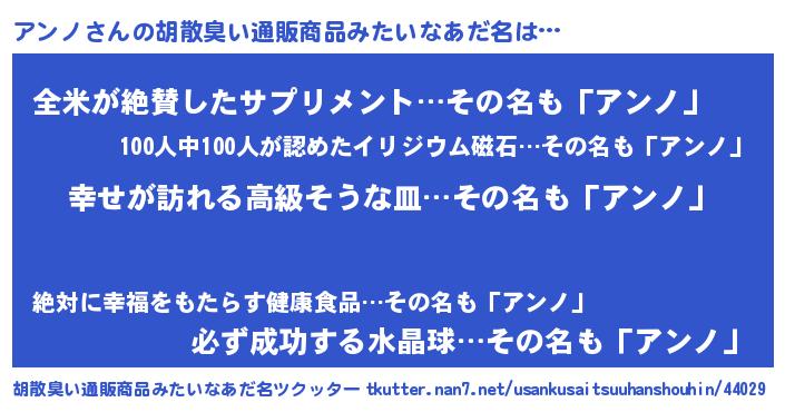 | ポケモン風あだ名 | 『アンノダネ』『ヒアンノ』 |