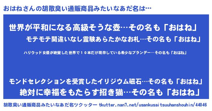 | ヘコむあだ名 | 『牛乳』『おはね(爆)』『おはもー』 |