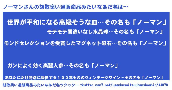 | 男性向けラノベタイトル風あだ名 | 『ノーゲーム・ノーノーマン』 |