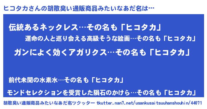 | 女子向けラノベタイトル風あだ名 | 『ヒコタカなんてお断りですっ。』 |