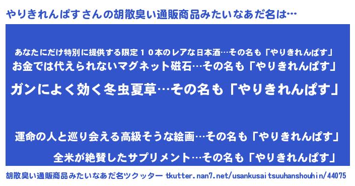 | 意味不明あだ名 | 『自称やりきれんぱす』 |