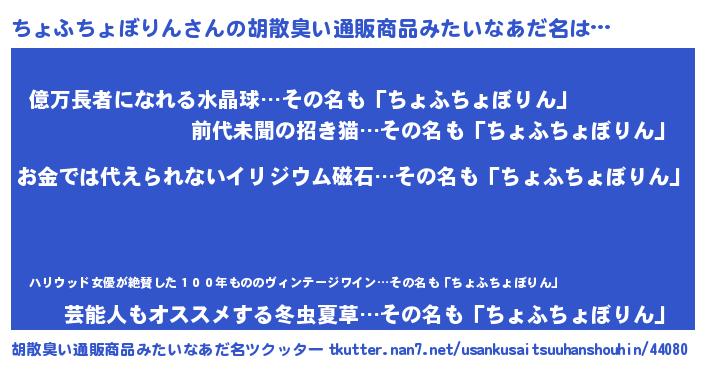 | ヘコむあだ名 | 『ちょふぇ~』『ちょふちょぼりん(笑)』 |