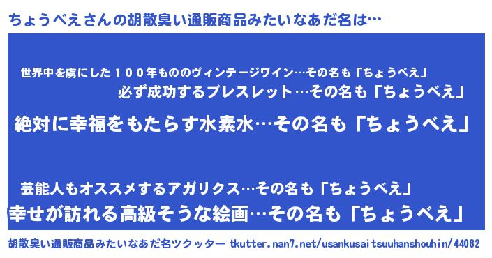 | ヘコむあだ名 | 『ちょうべえ(苦笑)』『豆乳』 |