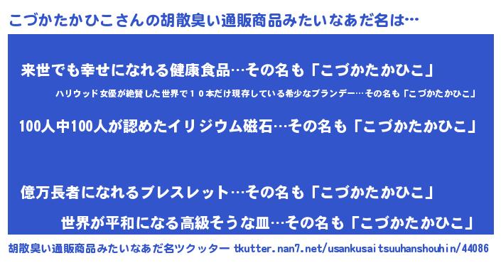 | 肩書あだ名 | 『こづかたかひこ助手』 |