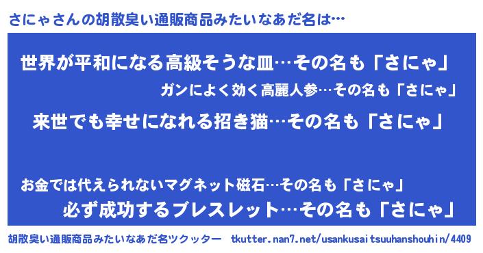 | 伝説のあだ名 | 『古より伝わる吟遊詩人さにゃ』 |