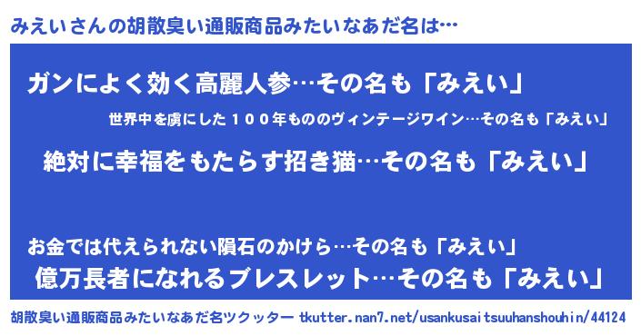 | 意味不明あだ名 | 『永久保存みえい』『自称みえい』 |