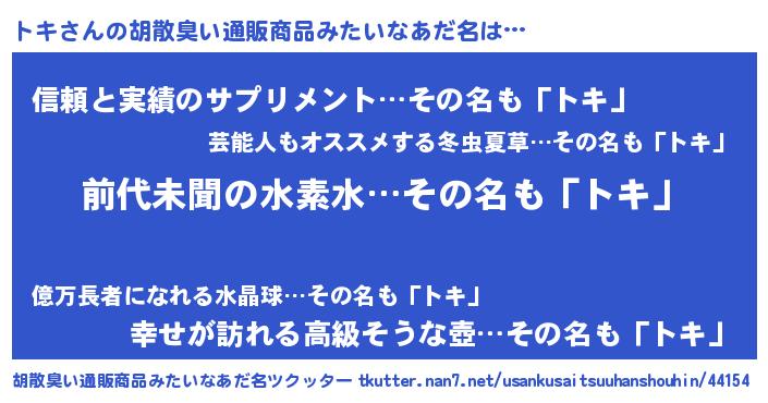 | 意味不明あだ名 | 『永久保存トキ』『とにかく怪しいトキ』 |