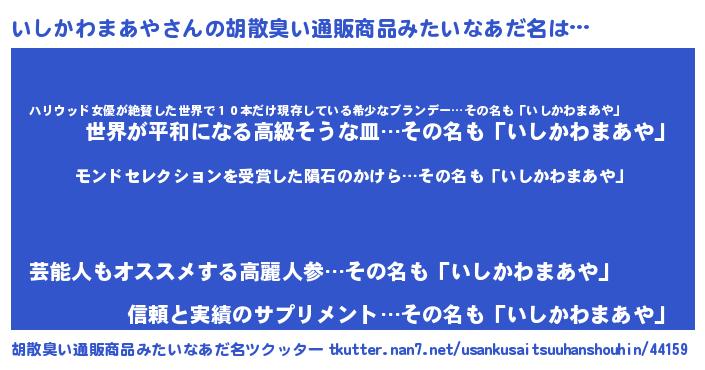 | 肩書あだ名 | 『いしかわまあやプロデューサー』 |