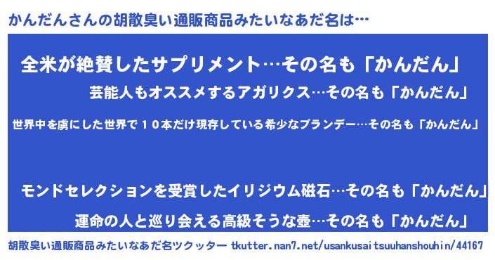 | 意味不明あだ名 | 『なめこ科かんだん属』『自称かんだん』 |