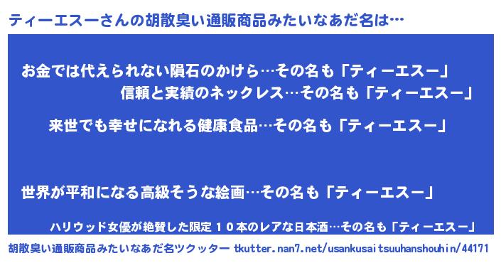 | 意味不明あだ名 | 『永久保存ティーエスー』 |