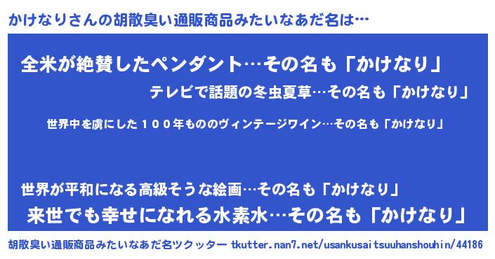 | 意味不明あだ名 | 『住所不定無職かけなり(6歳)』 |