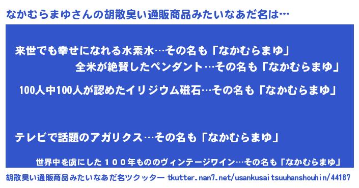 | 意味不明あだ名 | 『眠気覚ましガムなかむらまゆ味』 |