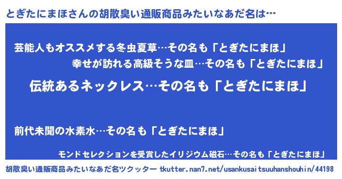 とぎたにまほさんの胡散臭い通販商品みたいなあだ名をツクッター!