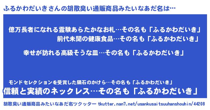 | 意味不明あだ名 | 『ふるかわだいきフォーエバー』 |