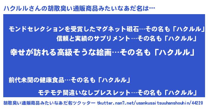 | 肩書あだ名 | 『ハクルル総理大臣』『ハクルル中将』 |