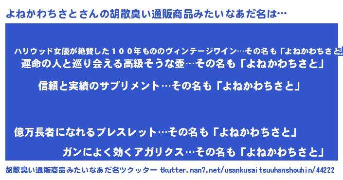 | 意味不明あだ名 | 『とにかく怪しいよねかわちさと』 |
