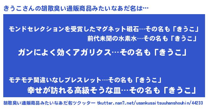 きうこさんの胡散臭い通販商品みたいなあだ名をツクッター!