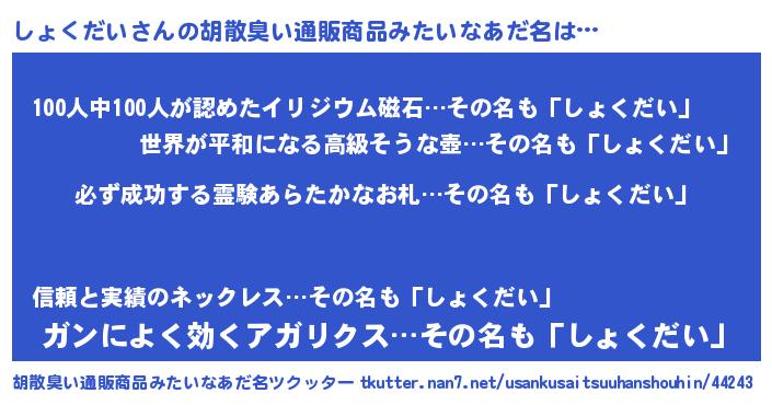 | ヘコむあだ名 | 『しょもー』『つくし』『しょお』 |