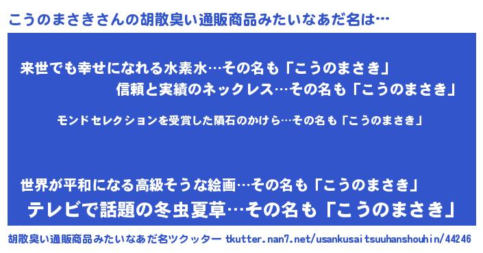 | ヘコむあだ名 | 『こうのまさき(遠い目)』『こうぷりん』 |