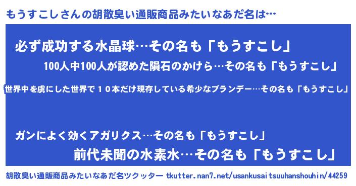 | 意味不明あだ名 | 『住所不定無職もうすこし(84歳)』 |