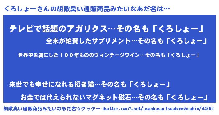 | 意味不明あだ名 | 『住所不定無職くろしょー(8歳)』 |
