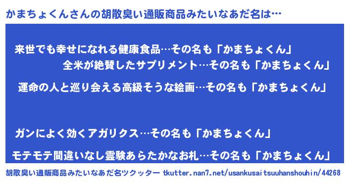 | ヘコむあだ名 | 『酢こんぶ』『かまちょくん(小並感)』 |