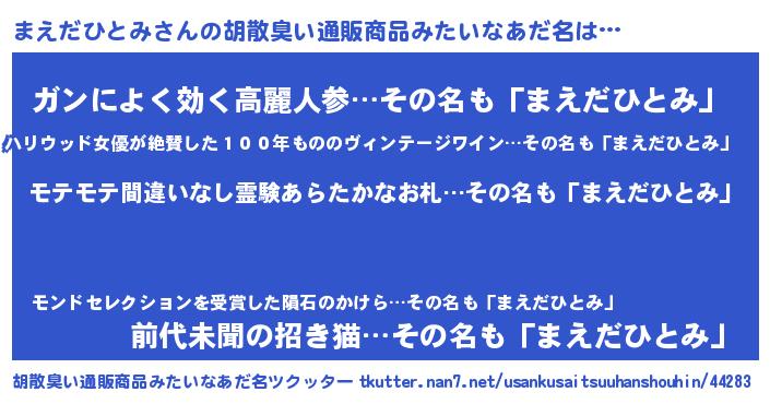 | ヒーロー風カッコイイあだ名 | 『スーパーマエダヒトミ』『仮面マエダー』 |