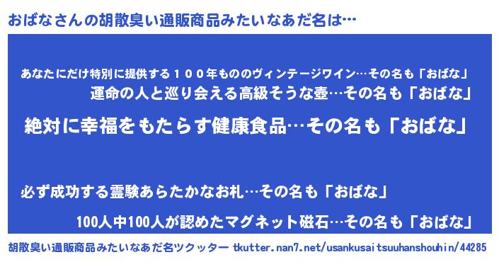 | 意味不明あだ名 | 『めかぶ科おばな属』『永久保存おばな』 |
